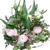 Ein liebevoll, aufwendig in Steckmoos gearbeitetes Kränzchen aus Polyantha-Rosen und dazu passenden saisonalen Blumen. So ein Kränzchen ist sehr dekorativ und hält sich lange. Sie können mir die Farb-Vorlieben oder Ihre Wünsche mitteilen. Diese werde ich, wenn immer möglich, umsetzen. Jedes Kränzli ist jedoch ein Unikat. Durchmesser ca. 30 cm