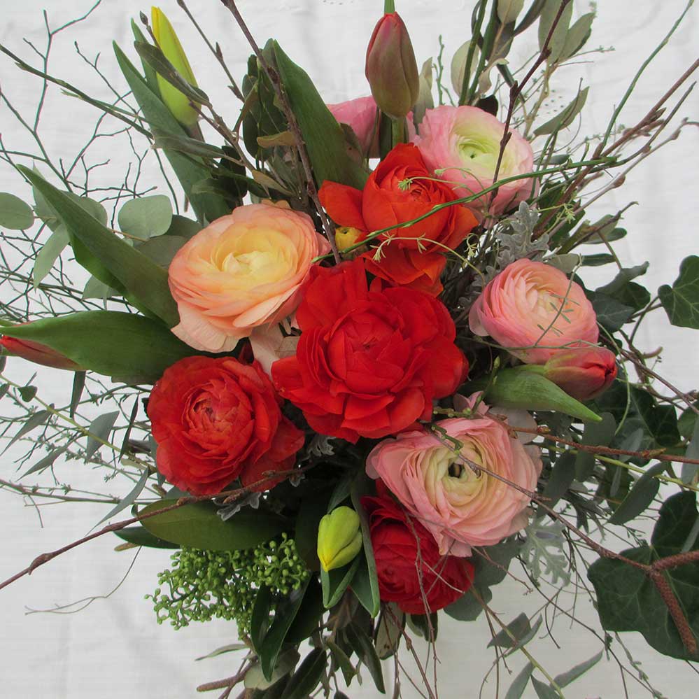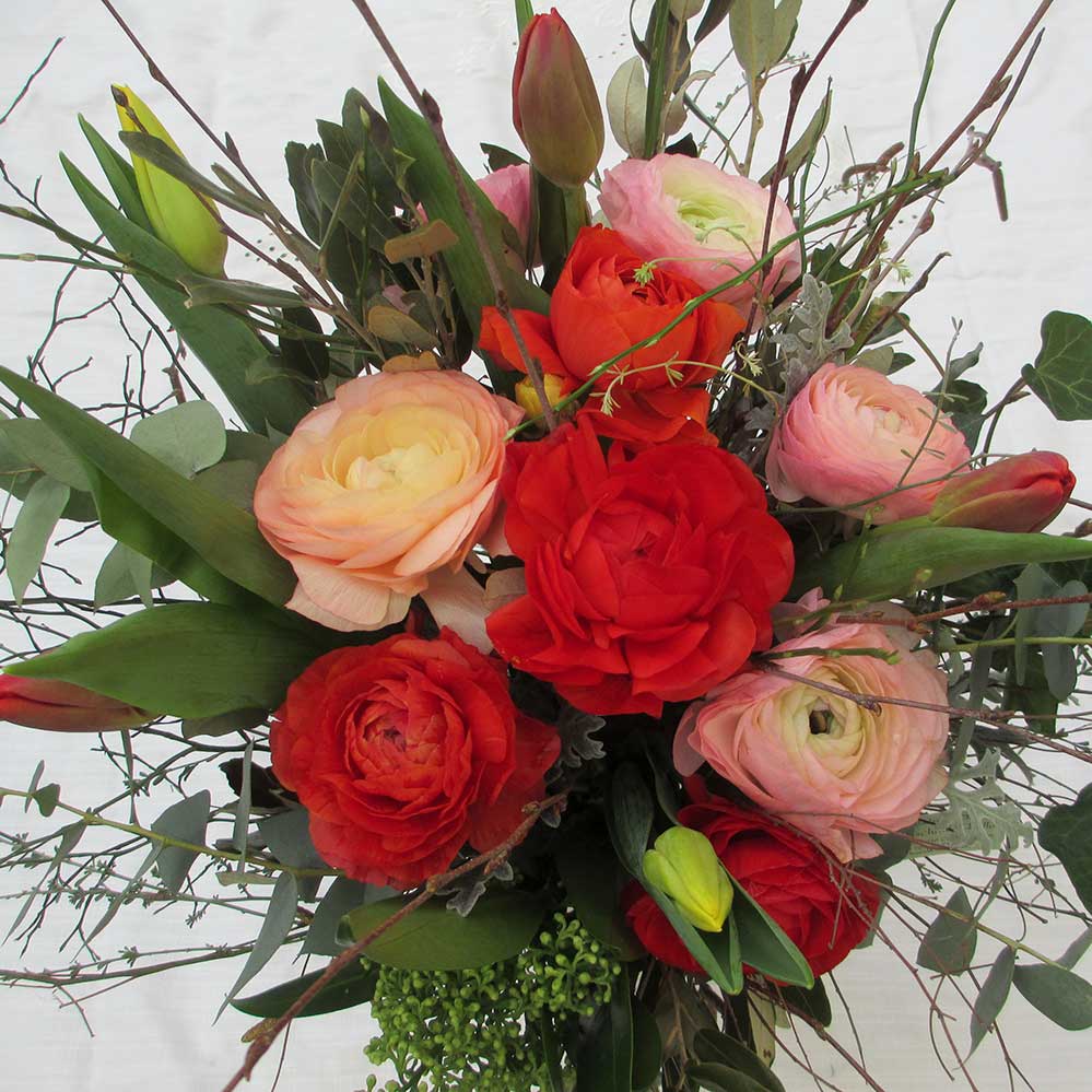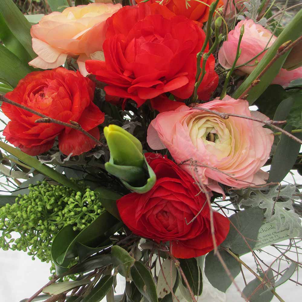 Ein bunter Frühlingsstraus mit Ranunkeli