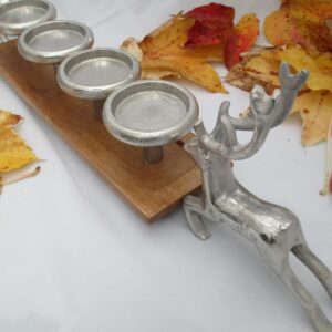 Einzigartiger, sehr hochwertiger Holz-Metall Kerzenständer mit Hirschen
